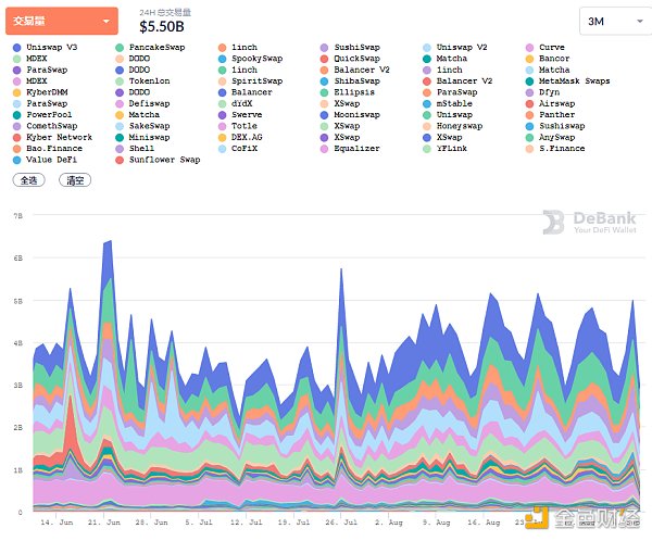过去24小时去中心化交易所的交易量数据来源:Debank