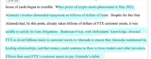 3、?2022年5月,AlamedaResearch发现大事不妙。当时该基金已经“借入”了数十亿美元的FTX客户资产,然而加密市场的剧烈波动让AlamedaResearch无法履行借款人义务,结果SBF愈发疯狂,让Caroline拿走更多FTX客户的钱。
