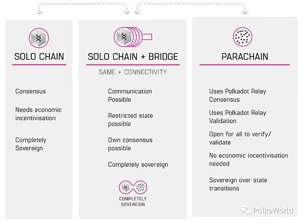 波卡中继链建立在 Substrate 上,将来连接波卡互操作层(中继链)并从中受益的链也将建立在 Substrate 上。关注隐私和许可的企业和联盟链可以很容易地添加这些功能以获得更好的控制。虽然 Substrate 不需要你的区块链连接到波卡,但它提供了一个使用桥或成为本地平行链的简单升级路径。