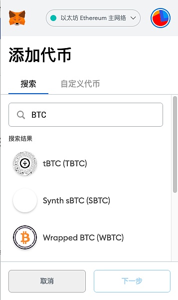 以MetaMask上为例,搜索BTC时候会出现很多类BTC Token,用户在选择投资时,要仔细地甄别Token信息以及审查其合约地址。