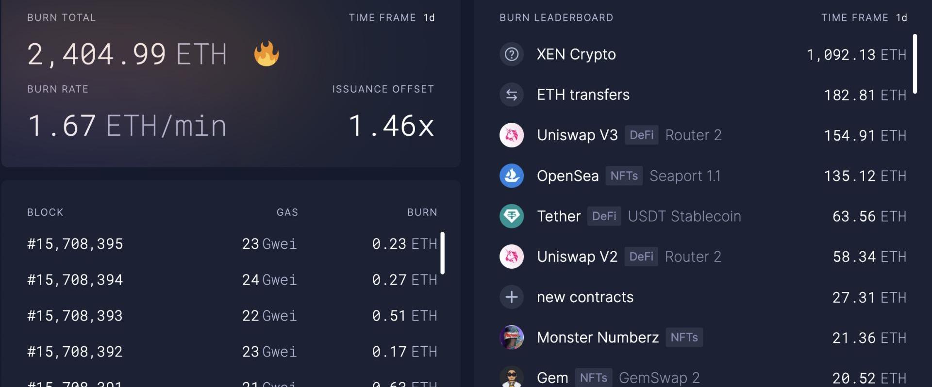 10月9日凌晨,以太坊Gas突然暴涨,以太坊浏览器显示200gwei。寻其源头,原来是各个社交媒体和社群正在不断铸造、传播和讨论项目XENCrypto。十二个小时过去,XENCrypto的铸造热度也并未消减。据ultrasound数据,截止目前通过XENCrypto销毁的ETH数量达1092枚,占全网今日总销毁量的45%。当前参与XEN的铸造地址也达14万。