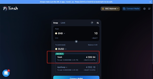 另外,对于许多聚合协议来说,用户在进行兑换时,除了需要支付一定的 GAS 费用之外,还需要支付一定的费用。例如用户在1inch 选择 2% 的滑点,如果实际交易滑点低与2%时,1inch会收取滑点差额部分,这无疑增加了用户的兑换成本。