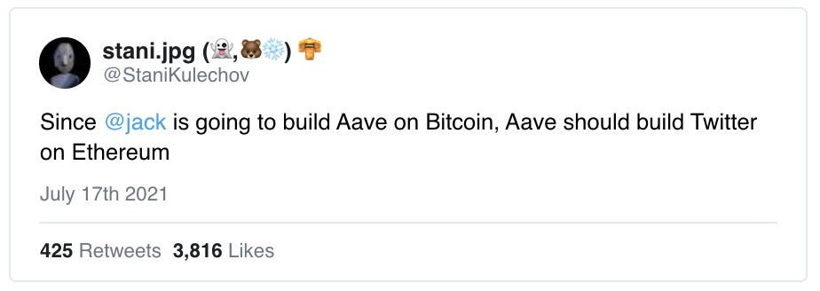 目前,Aave 正在开发一个基于以太坊的社交媒体平台,这是一个公开的秘密。我们知道,许多不同的数据点都对此有需求。
