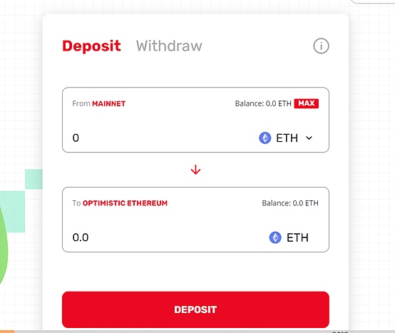 从使用体验上来说,它的界面有点像去中心化交易所Uniswap,用户只需选择存入Optimism的资产,点击存入按钮,就可以直接实现Layer1和Optimism链之间的资产转移。