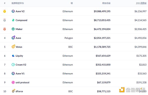 DeFi借贷平台借款总量数据来源:Debank