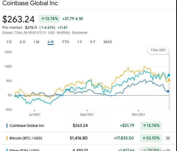再直观一点的体现,Coinbase的股票价格和比特币的价格就极为相关。