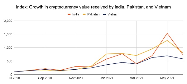 虽然印度、越南和巴基斯坦的加密资产采用率都很高,但就原始交易价值而言,它们却大不相同。