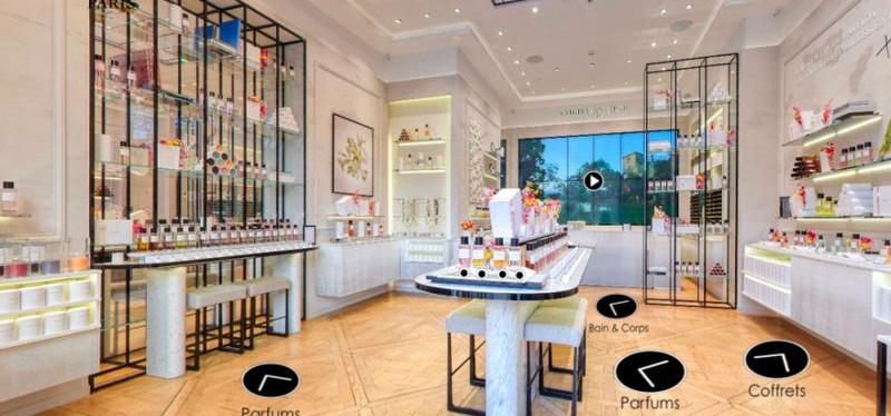 用户进店时,大概的流程就像是——从法国南部的LaColleNoire城堡走进店铺,然后陆续浏览不同位置的不同商品,喜欢就可以360°查看它的信息和视频,想买就直接下单。