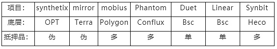 且这一点,在新兴的合成资产项目上表现明显。以下汇总了一些先知曾研究过的合成资产项目的情况: