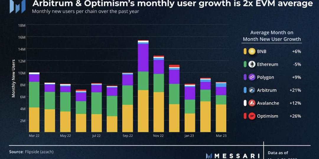 由于多起黑天鹅事件,各大公链生态在2022年都遭遇了重大挫折,整个行业的活动和用户群都在下降。然而在2022年下半年,随着FTX崩盘,用户开始回归EVM链。今天,我们就主要分析六大EVM链:ETH,BNB,Polygon,Arbitrum,Avalanche,Optimism。