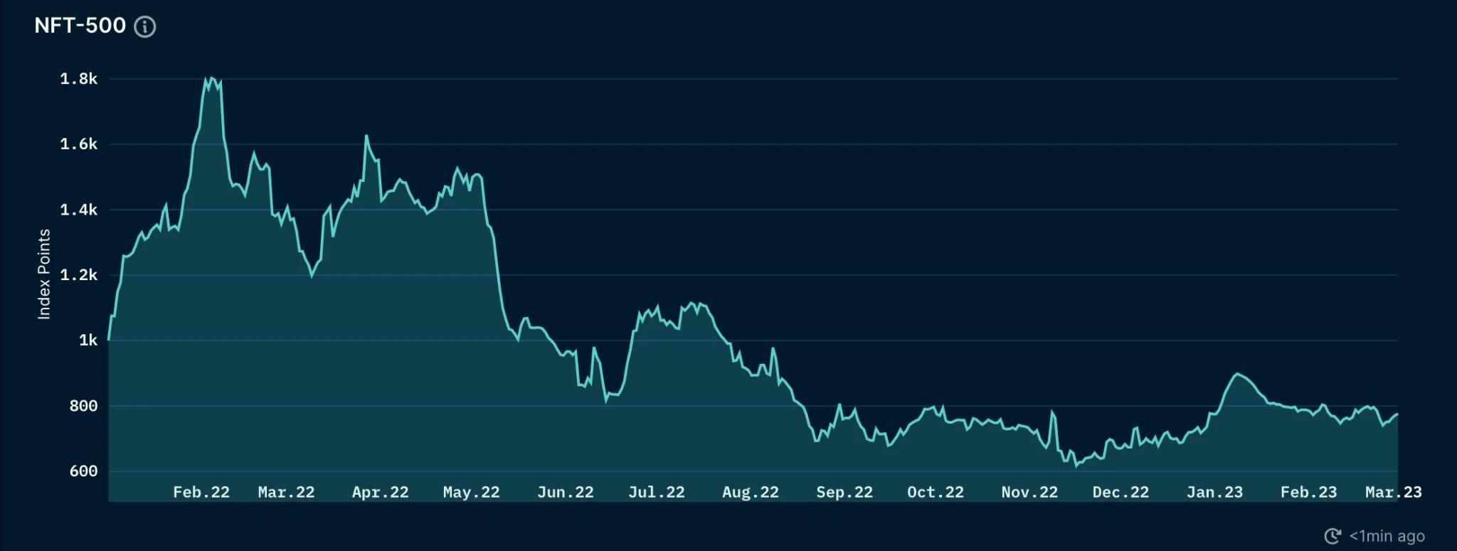 当前链上转账费用约为$0.9,Uniswap交易费用约为$8.19,Opensea的交易费用约为$3,42,本周Gas大幅下降,市场活性持续震荡;其中blur的活跃程度继续保持上周的趋势,gas消耗已经来到第一位,超越了uniswaprouter。5.NFT市场数据变化