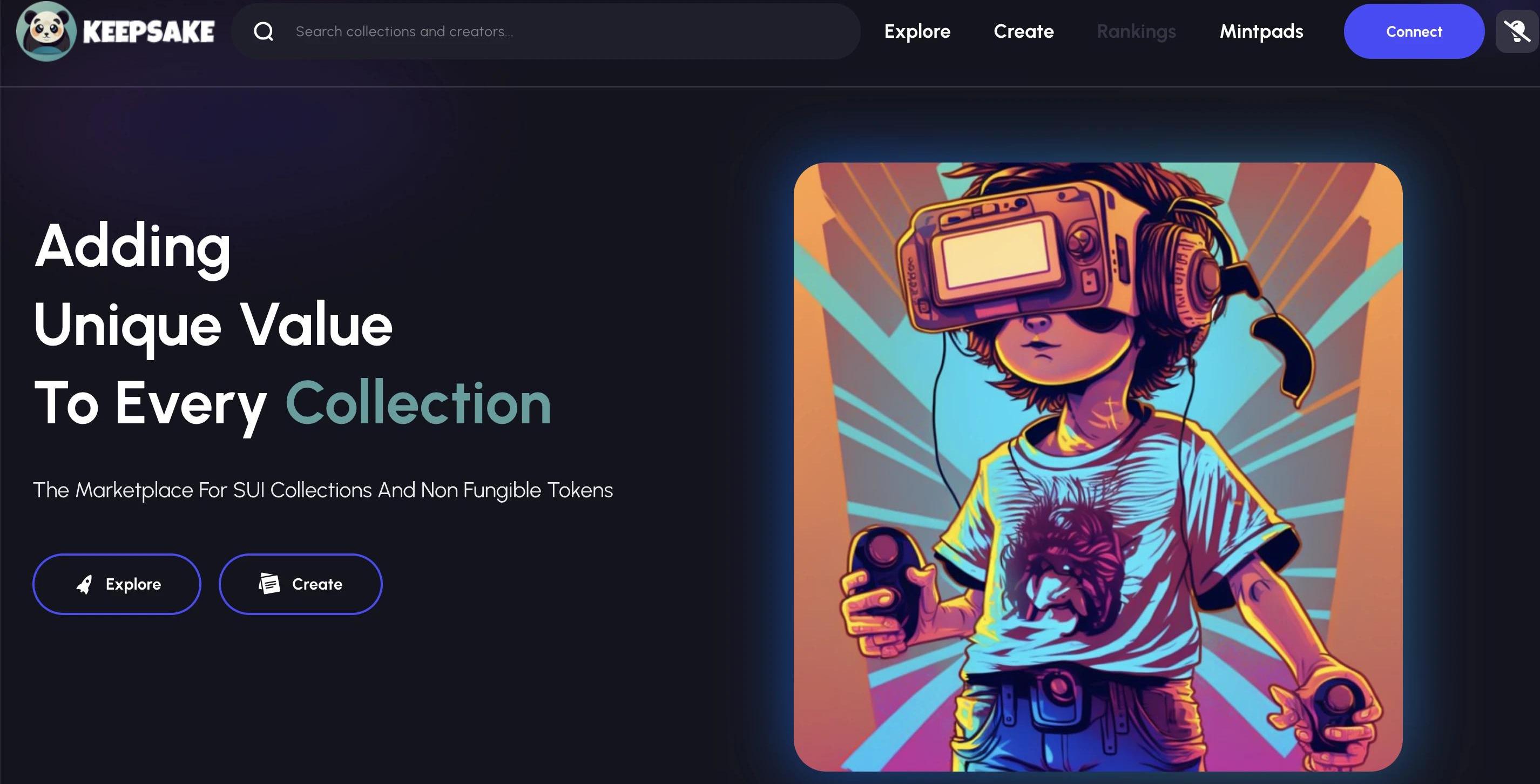 Keepsake是一个面向未来的NFT市场生态系统,专为游戏开发者、游戏玩家、创作者及其社区打造。Keepsake市场允许游戏SDK集成,以实现无缝播放和直接从游戏内列出资产。此外,每个KeepsakeNFT都可以转换为实物资产,例如收藏品、小雕像和毛绒玩具等。目前,Keepsake市场与SUI域名服务SuiNS建立合作关系,用户可以直接在Keepsake中购买SuiNS域名。在后期的合作中,还将允许玩家在页面内实时进行SuiNS注册。