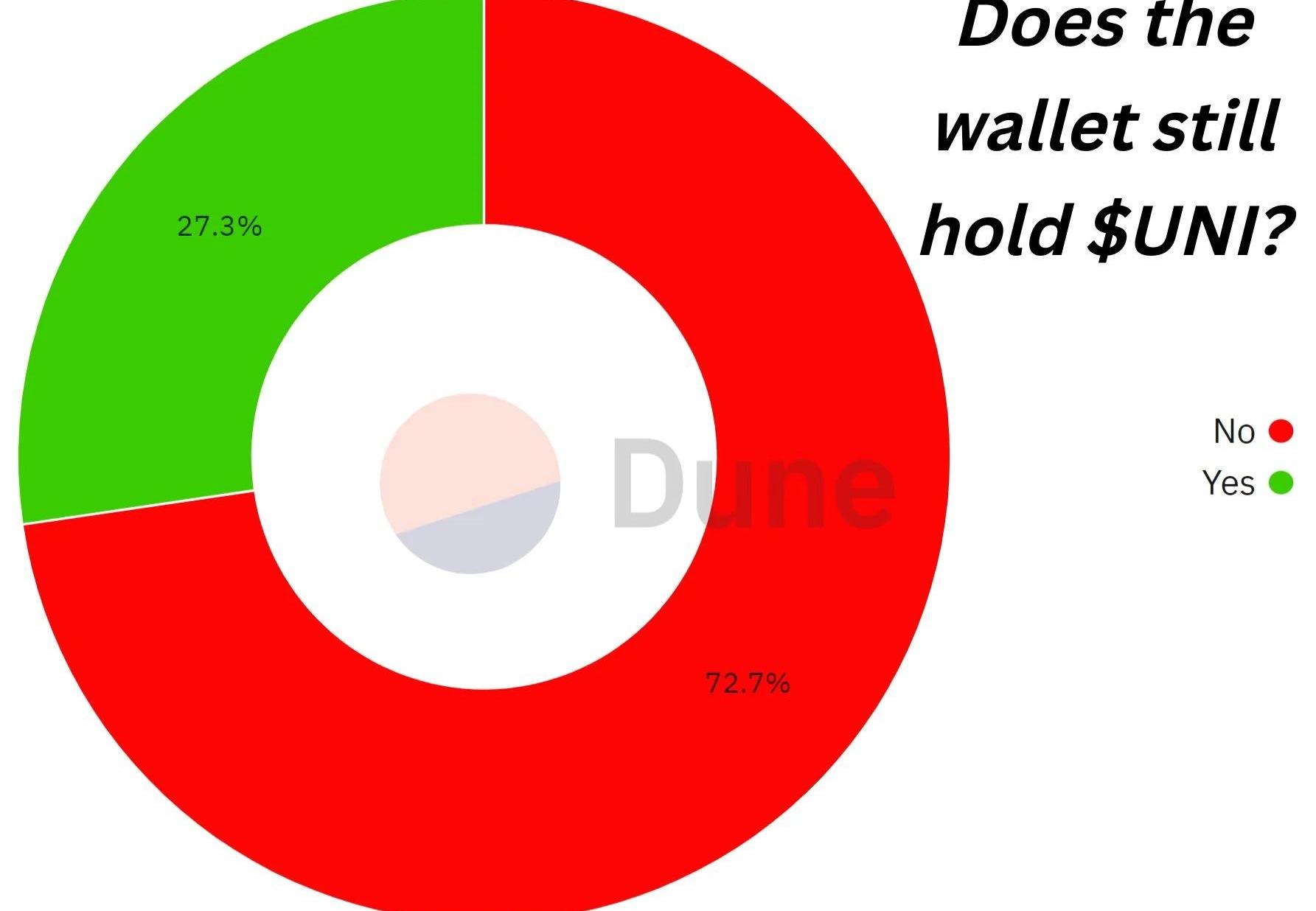 在剩下的约7%的用户中,大多数人卖出了一些,只有1%的钱包增加了他们的UNI头寸。