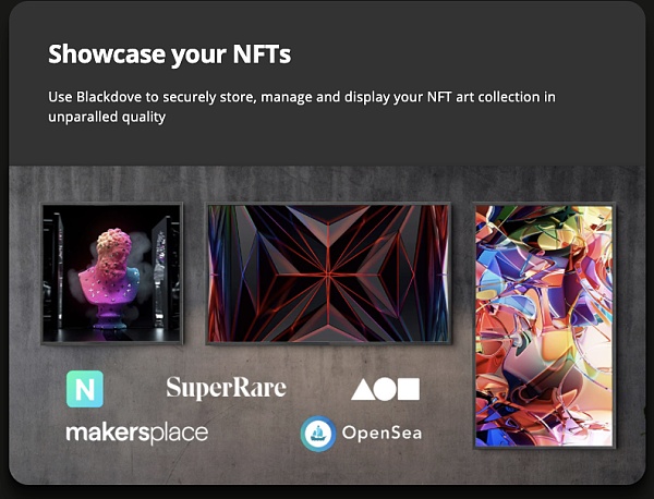 现在用户只要通过 iOS、Android、LG 的 webOS 平台或网络上的 Blackdove 应用程序管理他们的NFT ,无需额外硬件,非常的方便。