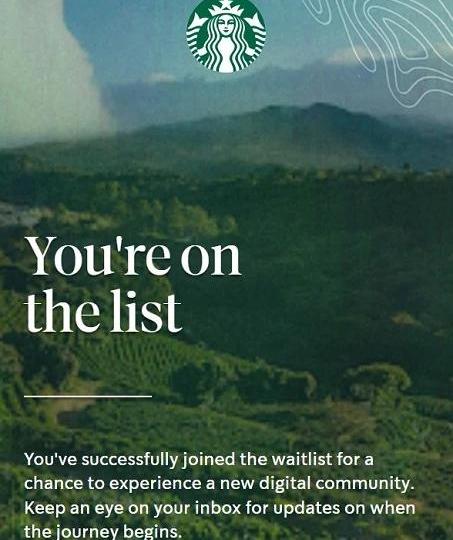 目前星巴克官方已提示“奥德赛”Web3旅程尚未正式开始,加入候补名单有机会体验星巴克的全新数字社区,但需要登记与星享俱乐部关联的电子邮件地址,并勾选同意候补名单条款和条件并已阅读星巴克隐私声明。如果不是星享俱乐部会员,则需要先进行注册。