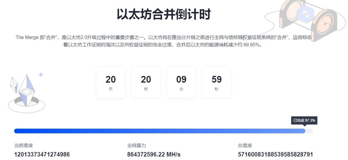 作为市值第二的加密货币,以太坊网络的任何变动都会受到市场的密切关注。以太坊的下一个重要升级“TheMerge”即将在9月到来,你也可以在我们的官网专题页清楚地看到,目前距离这次升级完成还有大约20多天时间。