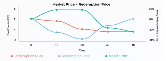 其中BCV为债券控制变量,由协议控制,债券的执行价与发行的债券量成反比,与OHM流通量成正比,OHM流通量越小,则购买OHM的折扣越高,激励参与者申购债券。