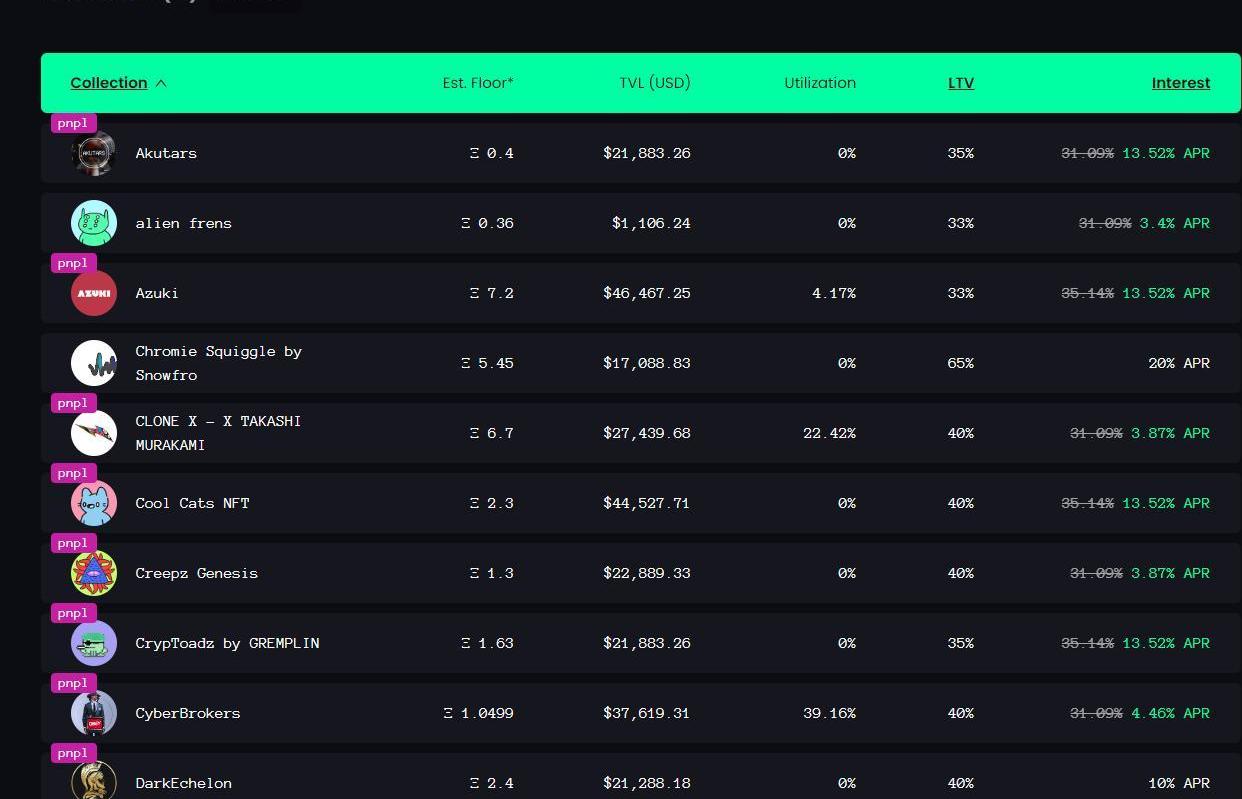 相较前几个协议,Pine还处于较为早期Beta阶段,今年5月完成SinoGlobalCapital和AmberGroup等领投的150万美元融资。Pine目前已经创建了31种NFT资金池,总锁仓价值为855,765美元。