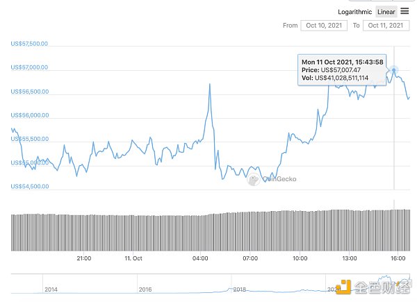10月11日,比特币站上57000美元/枚,为5月12日以来首次。