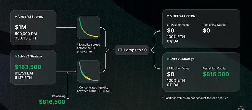 Uniswap的版本资料来源:KyrosVenturesKyrosVentures2021年3月,Uniswap宣布了第三次迭代UniswapV3。在更新的内容中,他们引入了两个主要的新功能:集中流动性和多费用等级。集中的流动性使LP可以精细控制其资本分配的价格范围,从而显着提高资本效率并降低滑点,同时还可以防止任何资产闪跌的情况,灵活的费用使LP有机会根据他们存入的货币对预期波动性来调整他们的保证金。