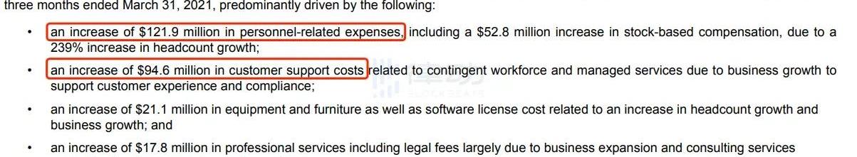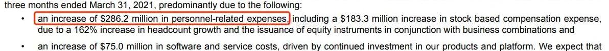 我们再看看这两项费用在季报里是怎么解释的。研发费用增加的近4个亿里边,有将近3个亿付给了自己员工,不管是通过股份支付还是什么形式,剩下大几千万费用来购买软件服务。
