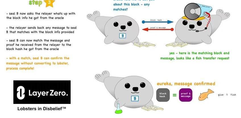 LayerZero派出两位助理海豹亲自上阵,为海豹们提供帮助。下图,也出现在LayerZero白皮书中,详述了LayerZero实现通信的方式。