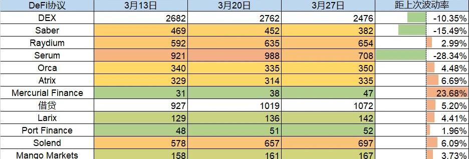 本周收益于ETH大幅上涨,ETH链占比大幅提升,从上周的54.84%上升至56.15%,占比上升1.31%,TerraTVL出现近两个月以来第一次占比下降,下降0.52%,其余各链变化均较小。各链协议锁仓量情况
