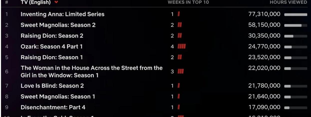 在如此丰富的内容中,有一个最明显的特点就是资源的聚集程度:Spotify上有800万艺术家,但0.7%的艺术家占了该平台上艺术家报酬的90%在Steam上发布的游戏中,98%来自独立工作室,而销量超过500台的游戏中有78%来自顶级的大型游戏发行商Netflix为他们的前10名剧集发布观众指标,但即使排名在前面的剧集也出现了上面所描述的规律。收视率最高的剧集可能比第10名的剧集要受欢迎5~63倍,而剧集的排名越靠后,它和前面的差距可能就越大。