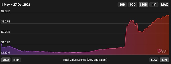 这代表了锁定在第二层扩展解决方案的价值量,从2020年第三季度的841万美元到2021年第三季度的25.1亿美元,同比增长29,786%。