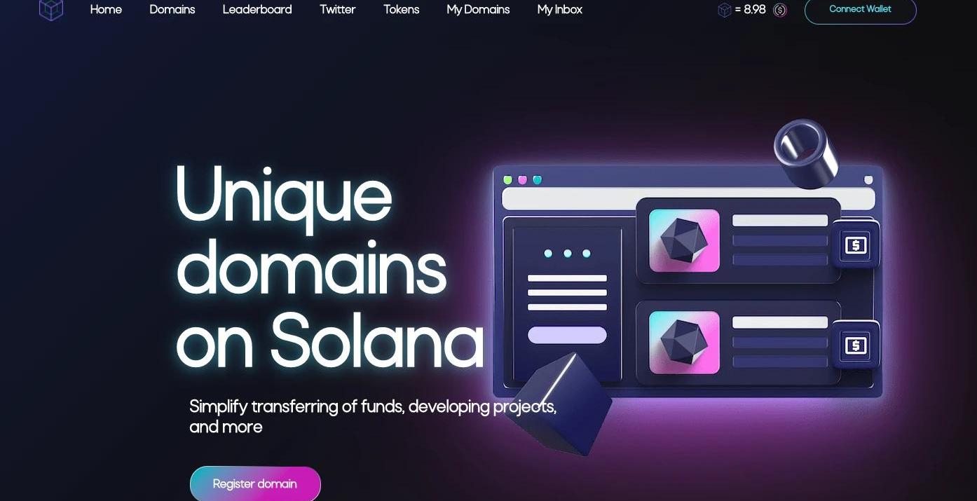 简介:作为2021年公链领域里「最靓的仔」,靓的不单单是百倍币价,还有其更为丰富的生态圈。Solana生态中拥有500多个项目,涵盖NFT、P2E游戏、DeFi、Web3等。Solana的强势出圈也表明它是被大家认可的高性能、低成本公链。市值:621.8亿美元代币:SOL,价格:203.11U域名注册地址:https://naming.bonfida.org,以“.sol”为结尾的域名体系,将域名和链上数据,包括钱包地址、IPFS文件ID、图片、文本等连接起来。