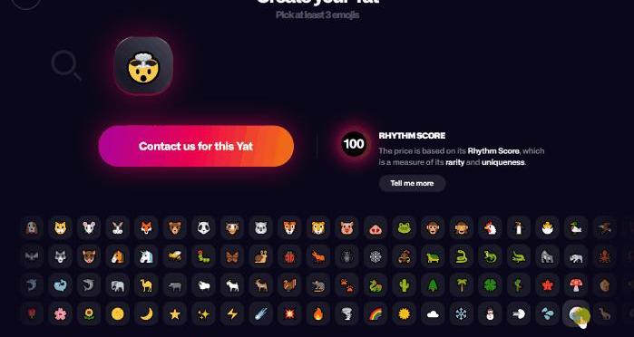 简介:Yat既是一个网站的名字,也代指其产品。公司创始人创造了一个用表情作为身份象征的方式,这串表情被称为EmojiID,也叫作Yat。代币:未发币域名注册:https://y.at,Yat表情包就是域名。目前他们制作了452个Emoji表情,供用户随意组合出自己专属的身份象征,这串EmojiID最多可包含5个表情Emoji。