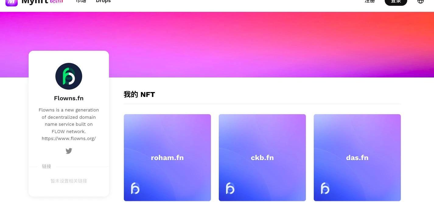 简介:NFT的龙头公链,背后的投资机构超过38家,包括coinbase资本、a16z、分布式资本等知名风投。合作过众多知名品牌如NFL、UFC、华纳音乐、NBA和Ubisoft等,生态种类覆盖艺术、时尚、藏品、DeFi、游戏和体育等诸多领域。市值:32.06亿美元代币:FLOW,价格:10.19U域名注册:https://mynft.io/Flowns.fn,开放Flowns域名「.fn」的域名,同时开放二级市场交易。