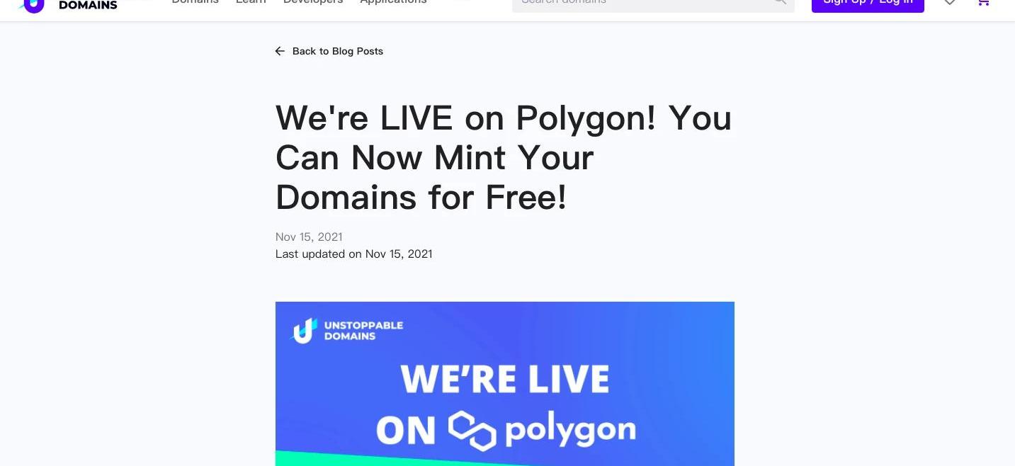 \nPolygon上的域名管理也计划将在未来几周推出,用户将能够用多个钱包配置个人铸造的域名,还将允许以太坊与Polygon上的域名进行桥接转移。注册地址:https://unstoppabledomains.com/blog/domain-minting-live-on-polygon
