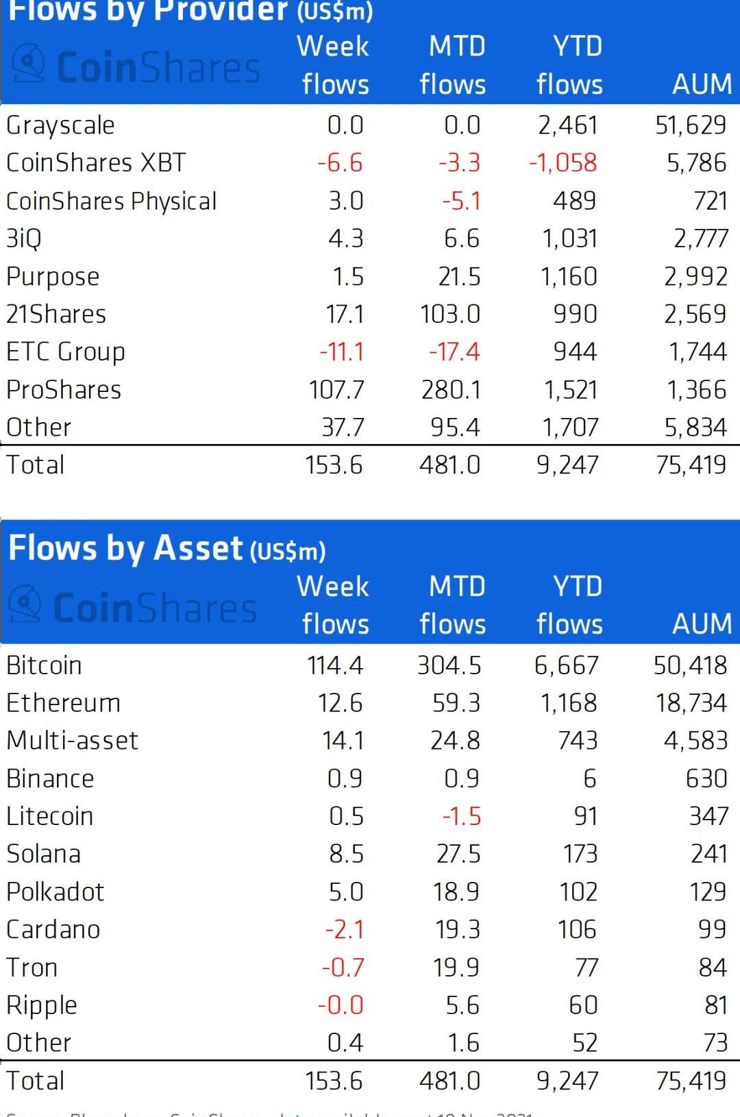 尽管最近加密市场出现抛售,投资者对加密货币敞口的兴趣并未减弱。比推此前报道,CoinShares的一份报告显示,上周数字资产投资产品流入了1.54亿美元。机构投资者正逢低买入比特币(BTC)、以太坊(ETH)和Solana(SOL)产品,其中流入比特币基金的资金为1.14亿美元,以太坊基金的流入总额为1400万美元。最近在美国推出的比特币期货ETF占上周比特币产品流入量的90%。其他山寨币产品,上周出现小幅流出。年初至今,机构投资者已向比特币基金分配了超过66亿美元,向以太坊投资产品分配了11.7亿美元。以月为单位来看,Solana投资产品上个月的流入总额为4300万美元。