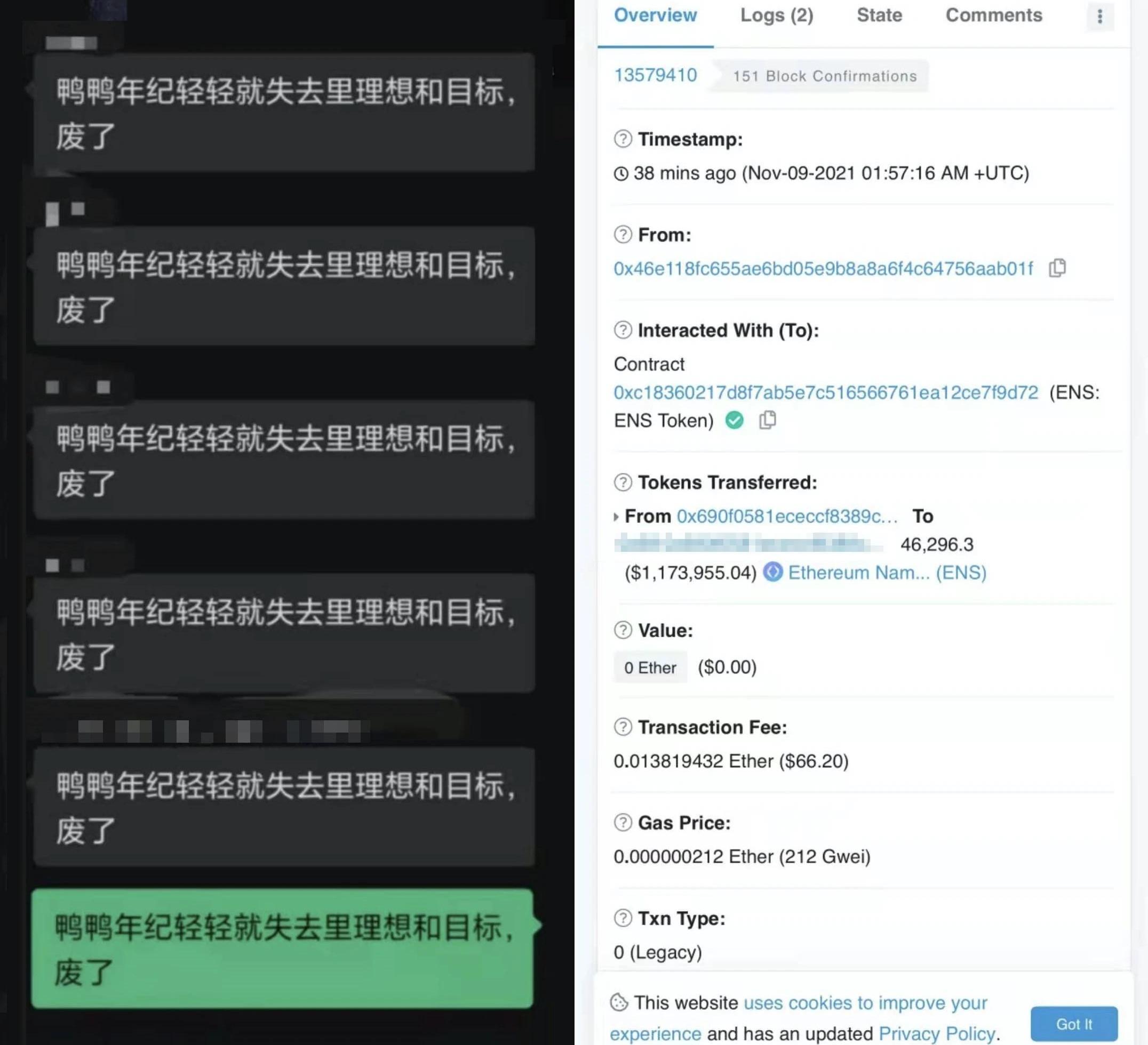 「钱都是大风刮来的,如果感觉挣钱很累,那就是你有问题。」不知道其他行业是否存在大风刮钱的现象,但在区块链这里,大风确实可以刮来不少。空投是加密世界中常见的一种行为,许多项目会通过向早期用户、开发者、建设者等多方生态参与者免费发放token的方式来繁荣并建设生态。还记得去年全球最大去中心化交易平台Uniswap的空投,让行业如同过年,按当时的价格,也是人均一部iPhone的水平。今年的狂欢,来自一个叫ENS的项目。这是行业内多年的OG项目,以太坊域名,既然NFT头像在元宇宙的故事里能讲通,那在最接近真正元宇宙的以太坊网络中,域名也是身份的代表,也有自己的价值。而这个OG的空投引发的财富效应,实在惊人。社群中流传出这样一则消息:一位中文社区的建设者成功入选ENS贡献者,并领取到4.6万枚的贡献者空投。而该用户颇为年轻,目前大学在读,并未向加密市场投入大量本金从事投资,却靠社区建设「意外」实现了财务自由,引发了大量投资者的艳羡之情。以当前价格计算,一枚ENS价格约为60美元,4.6万枚ENS空投约合278万美元。