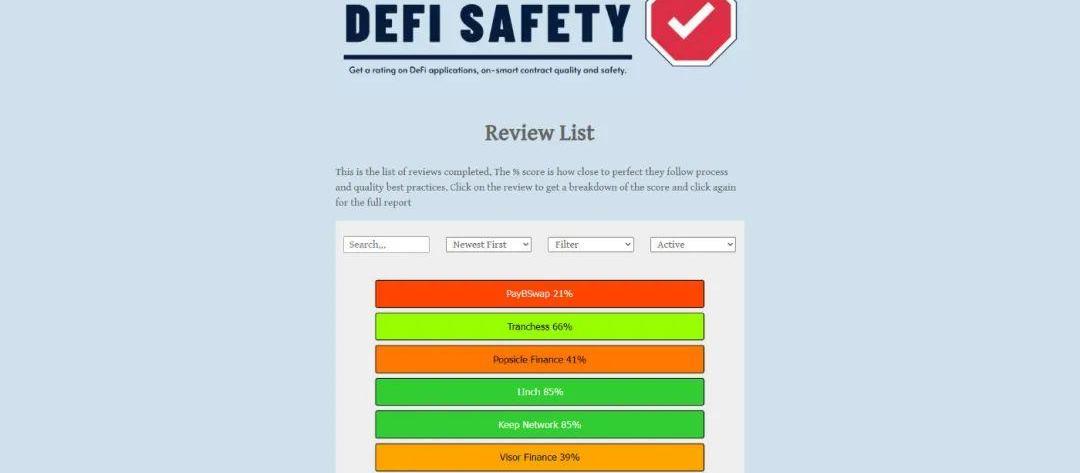 检查代码的审计示例依赖信誉较差的审计师可能会对用户资金造成重大风险,因为他们可能会降低审计质量,或者可能没有审计复杂智能合约的重要经验。一些项目可能会雇佣多个审计员来审计智能合约代码,以确定协议的信任度。使用像DeFiSafety这样的第三方审计平台也可以帮助减轻对代码质量、团队、测试过程、安全程序和访问控制等多个因素的担忧。