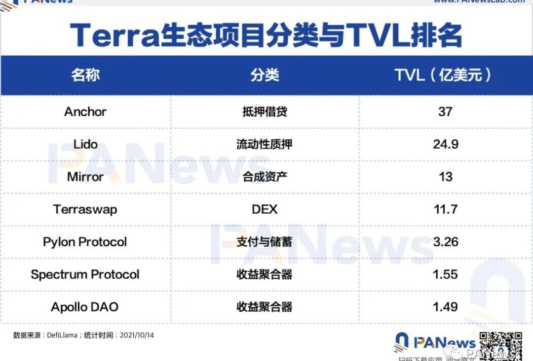 从LUNA和稳定币UST开始,Terra逐渐形成了一个完整的生态。首先,团队将UST带入现实购物中,保证了UST与LUNA的作用。然后团队开发了超额抵押UST进行铸造股票等合成资产的Mirror,率先实现了股票类合成资产的去中心化铸造和交易,铸造的资产称为mAsset。专用于UST借贷的Anchor的出现又锁定了大量UST存款,以及Terra生态中的其它代币作为抵押品,提高资金利用率。