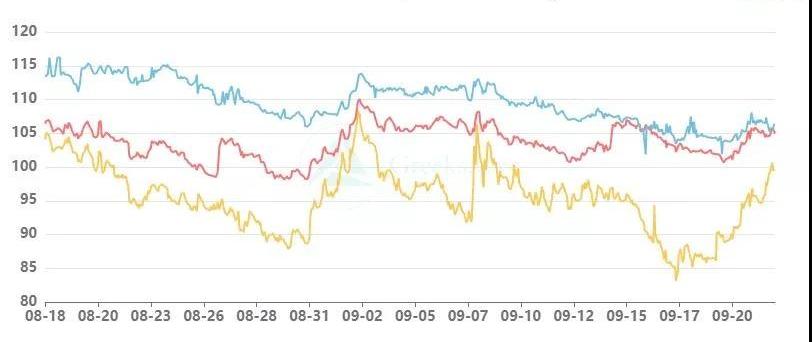 播报数据由Greeks.liveDataLab格致数据实验室和Deribit官网提供。下跌继续,凌晨比特币盘中一度跌破40000美元整数关口,以太坊也跌破3000美元关键点位。数字货币趋势渐弱,目前价格下方无明显支撑,外部因素尚未明朗,颇有312之前的市场气氛。比特币昨日结算价43042美元,Reddit粉丝币价比82,七日粉丝复利年化增速34%以太坊昨日结算价3044美元,Reddit粉丝币价比400,七日粉丝复利年化增速29%以上参数为个人观察市场热度使用的指标,详细内容可以参见之前的文章《币的估值指标:Reddit粉丝币价比》期权持仓量18.5万张,价值78亿美元,期权成交量2.1万张。10d78%30d72%90d70%1Y79%各标准化期限隐含波动率:今日:1m85%,3m91%,6m93%,DVol94%9/21:1m84%,3m91%,6m93%,DVol93%比特币下跌继续,凌晨盘中一度跌破40000美元整数关口,随后立刻反弹至目前的42000美元。数字货币趋势渐弱,目前价格下方无明显支撑,外部因素尚未明朗,颇有312之前的市场气氛。暴跌过后,中短期IV持续上升,中远期IV变化不大。