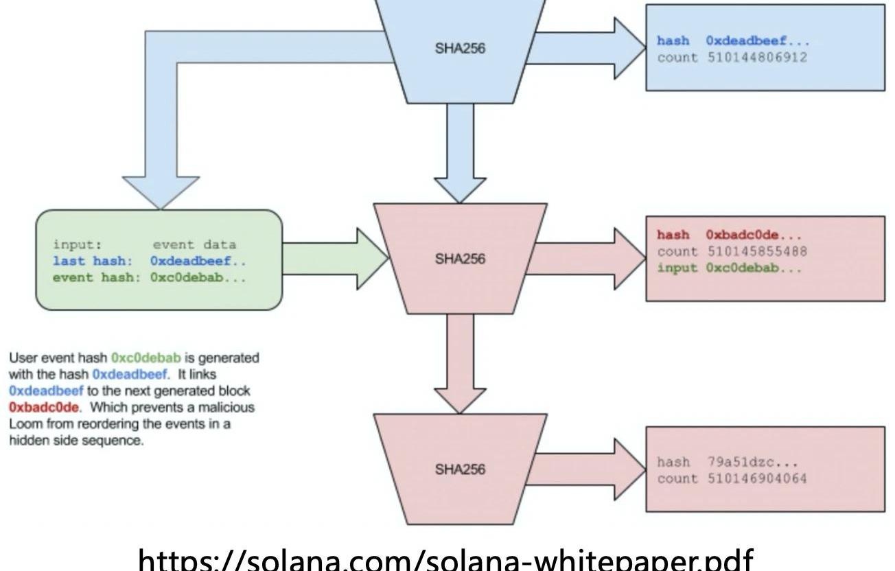 Solana是一条发展迅猛的全行业公链,最大的创新是PoH,一种可验证的对时间采样和事件排序的方法,可以作为网络全局时钟,从而实现全网节点对相对时间的统一度量和消息的高效通信;而TowerBFT共识则是在PoH全局时钟的基础上,实现了对PBFT消息传输和VC优化。其他的优化点像大区块分片EC编码和分层传输、流水线化充分利用硬件资源、并行合约执行等,都是在高TPS下必须要做的工程实现,当然想到不代表做到,Solana在公链架构优化工程实践层面走的是比较靠前的。
