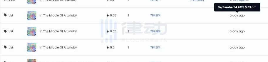 而在消息宣布的近十分钟前,0x794便大量买入Dailydust的NFT作品并将这些作品高价挂单。