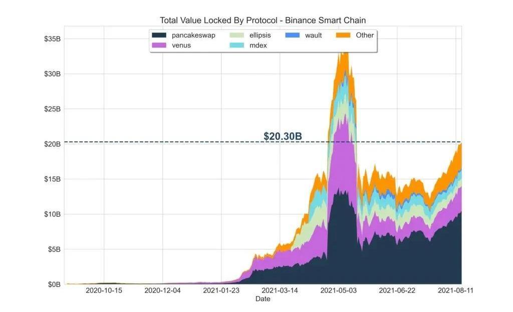 接下来是:币安智能链BSC、雪崩Avalanche和马蹄Polygon。这些都是兼容EVM的区块链。5.币安智能链——TVL200亿美元