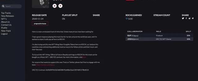 目前,对唱片公司、出版商及其律师来说,音乐授权和所有权转让是一个相当繁琐的过程,手动清除样本使用或所有权转让甚至会推迟音乐的发布日期。但使用NFT可以让音乐授权和转让像线上购物一样方便快捷,文档传输高效且安全。由于新冠病疫情给音乐行业带来的沉重打击,越来越多人认为NFT可以作为减少数字作品盗版、帮助为艺术家创收的一种新方式。04-NFT音乐平台ROCKI+AUDIUS