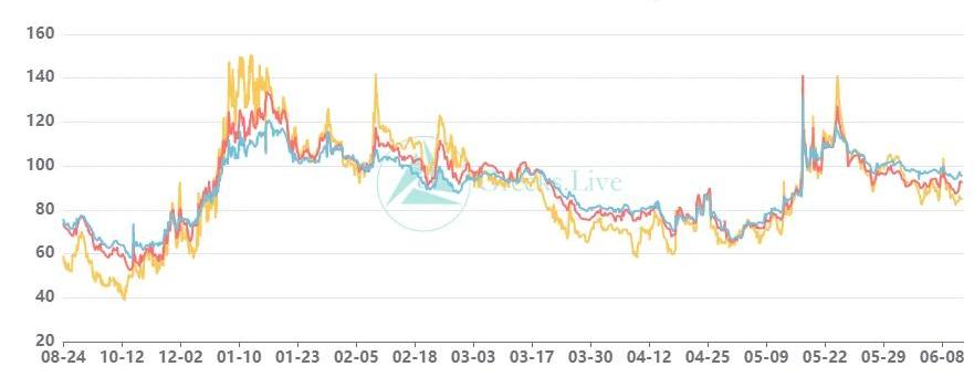 以太坊期权成交量1.1亿美元,持仓量31亿美元。10d82%30d190%90d134%1Y105%各标准化期限IV:今日:1m113%,3m120%,6m120%6/12:1m108%,3m118%,6m121%以太坊在一个比较危险的位置横盘,回溯历史数据,目前行情不断震荡下跌的情况很容易崩盘。以太坊的市场结构变化非常剧烈,这和以太坊的价格波动剧烈有直接关系,主要期限IV小幅下降。