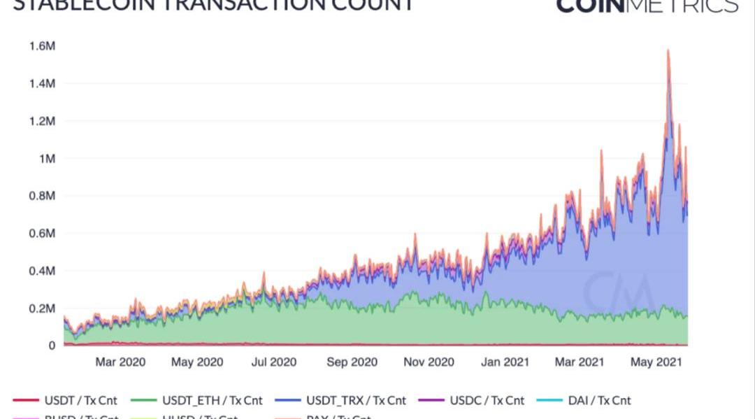 不出所料,稳定币的交易数量也在5月19日达到峰值,超过150万。这些交易中的大部分是由于Tron版本的Tether。与以太坊和比特币相比,Tron的交易费用最低,这使得它成为发送相对较小的交易,或在交易所之间转移资金等使用情况的选择。