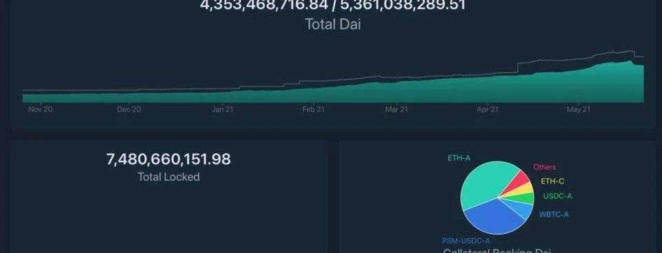 「链上央行」Maker在去年312遭遇了清算系统的问题,不过在近几日的行情波动中表现良好,可见该团队调整后的系统设计已经解决了去年存在的问题。DAI的发行量目前约44亿美元,而整个系统抵押资产的总量接近75亿,整体抵押率约为170%。