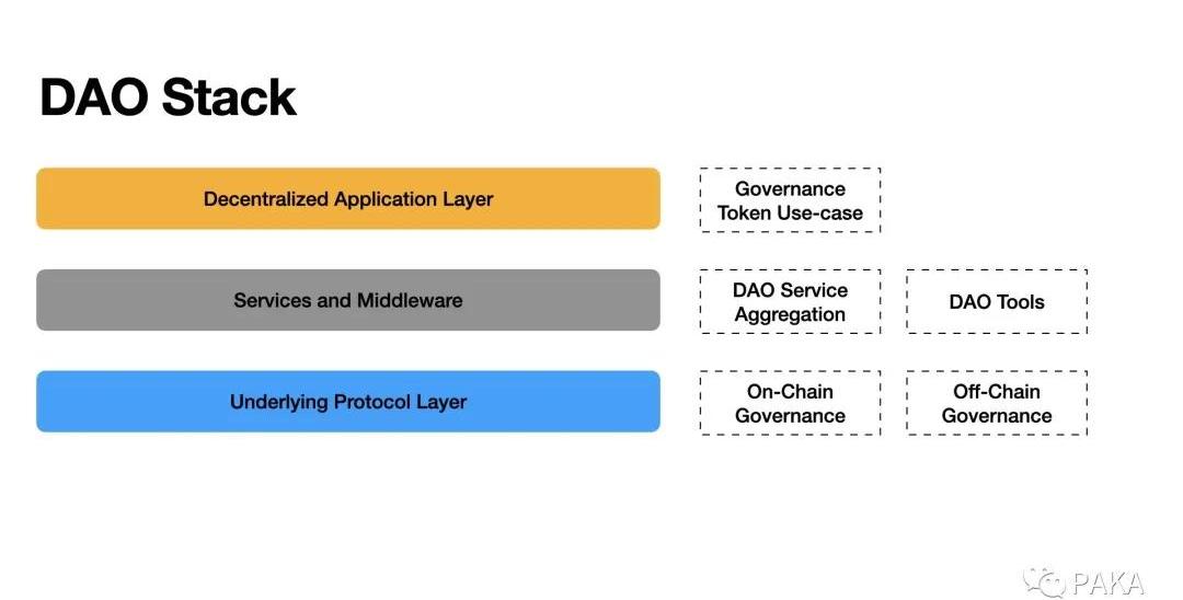 DAO作为一种集体决策的组织治理范式对应blockchaintechstack分别表现为三种形态:协议层共识、应用层决策和中间件服务。协议层治理1.从链外治理开始BitcoinEthereumBIPEIP非公式化协商模式2.链上治理decred,tezos,polkadot自动执行升级应用层治理融资型:TheDAO→MolonDAO业务决策型:MakerDAO→DappsDAOmodules治理中间层随治理的分工精细化,市场出现了Aragon这样的用于创建并管理DAO的工具类产品。及Snapshot等提案集成平台。Aragon,DAOstack→SubDAO