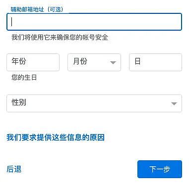 第三步填写辅助邮箱,主要用户密码丢失等紧急情况的找回,建议设置一个自己的常用邮箱地址: