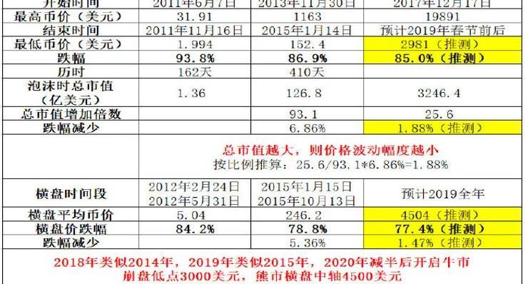 在比特币发展历程中,四年”减半周期“曾多次被验证是有效的,有很多分析者将这种现象视为一种规律,然后按照”历史总是重复相似“的原则,以时间线来预测BTC价格变化。其中比较有代表性的便是江卓尔,下图为江卓尔用数学方法计算的牛熊见顶和见底时间。
