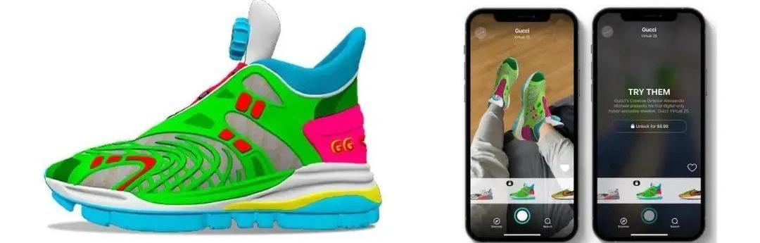 这双鞋由Gucci的创意总监AlessandroMichele设计,AR营销公司Wanna.Fashion与Gucci共同打造。