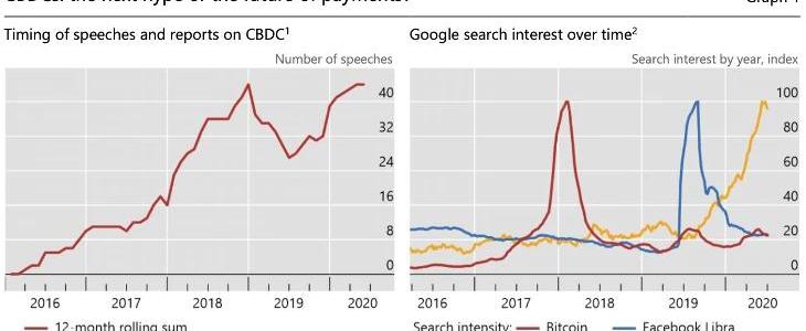 国际清算银行工作文件#880央行数字货币的崛起:驱动因素、方法和技术,第4页https://www.bis.org/publ/work880.pdf到2019年底,在公开场合中,央行官员相关的暗示变得频繁,尤其是在零售型CBDC方面。自2018年底以来,提及有关零售型和批发型CBDC的演讲次数再次增长,并且整体呈现比较积极的性质。